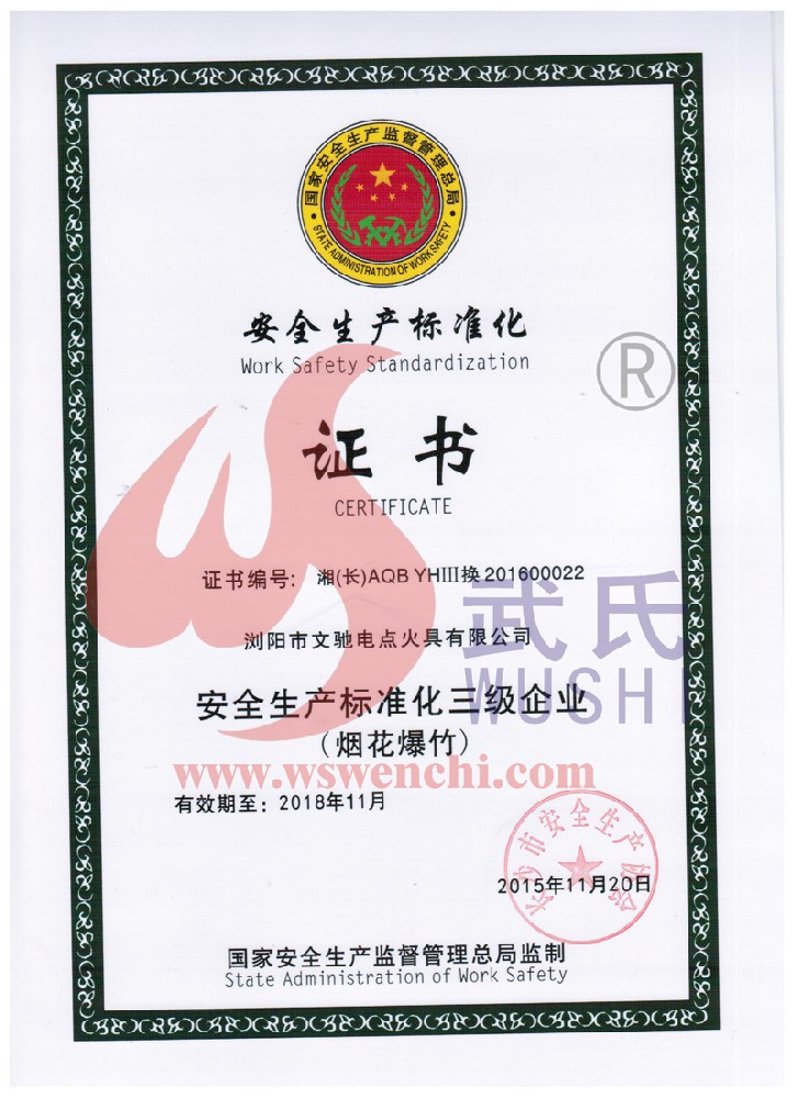 瀏陽市文馳電點(diǎn)火具有限公司(原培文電子點(diǎn)火器材廠),創(chuàng)建于1998年,是一家專業(yè)從事研制銷售電子點(diǎn)火產(chǎn)品的民營科技企業(yè),是我國第1枚煙花用電點(diǎn)火頭生產(chǎn)者,是《煙花爆竹電點(diǎn)火頭國標(biāo)》牽頭起草單位。公司位于中國“煙花之鄉(xiāng)”湖南省瀏陽市,地理位置優(yōu)越,交通便利?! ? 我公司研制的對象是用電能引燃火藥、做機(jī)械功等預(yù)定功能的一次性使用的元件或裝置,包括電點(diǎn)火頭(英文名ElectricMatch or Electric Igniter,中文俗稱“電火柴”或“電發(fā)火頭”)、電點(diǎn)火管和延期電點(diǎn)火管;我們估且在以后的產(chǎn)品技術(shù)欄中將我們研究的產(chǎn)品統(tǒng)稱為電點(diǎn)火具,將電點(diǎn)火器看成是用于提供和控制供給電點(diǎn)火元件點(diǎn)火的電能器材;我們研究的電點(diǎn)火橋路有橋絲式、無橋絲···